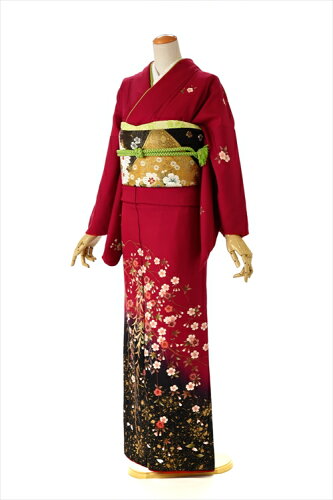 ■0532-39-7660 標準サイズ 身長・・・153m〜165cm位 洋服サイズ・・・7号〜11号位まで 商品説明 甘味を帯びた濃いピンク地に裾の黒のグラデーションと枝垂れ桜とのコントラストが何ともしゃれ味に満ちたお着物です。
